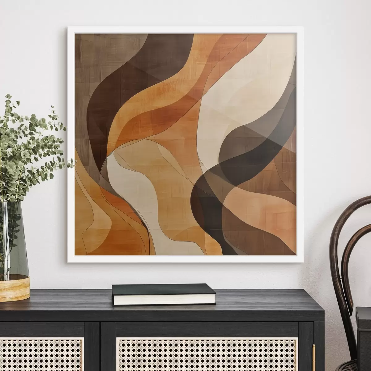 Poster Composition abstraite aux lignes ondulées dynamiques, dans une palette de tons brun terre cuite Nr f48851