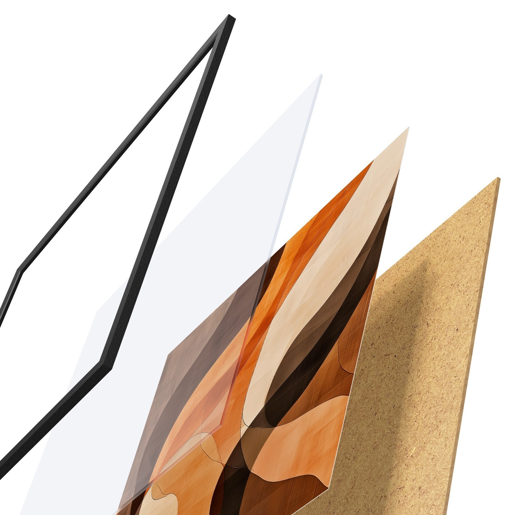 L’affiche encadrée est composée d’un cadre, d’un plexiglas, d’une image imprimée et d’un support en aggloméré. Elle est prête à être accrochée au mur grâce aux fixations situées à l’arrière.