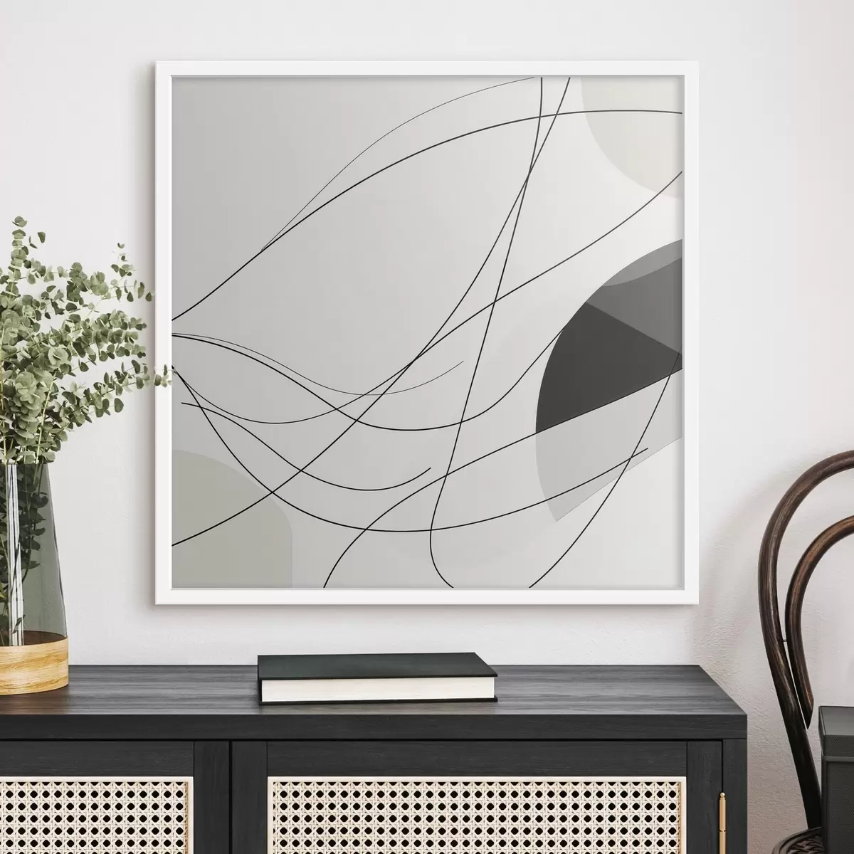 Poster Composition abstraite composée de fines lignes courbes dans un style minimaliste f48854