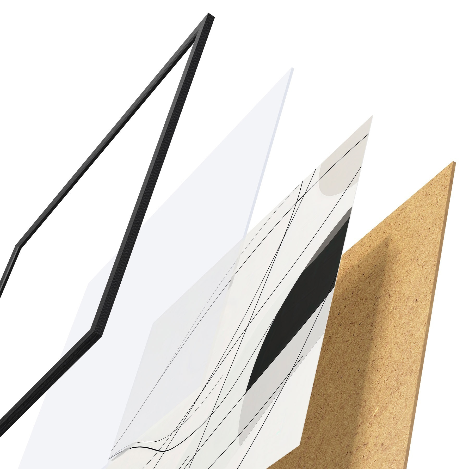 L’affiche encadrée est composée d’un cadre, d’un plexiglas, d’une image imprimée et d’un support en aggloméré. Elle est prête à être accrochée au mur grâce aux fixations situées à l’arrière.