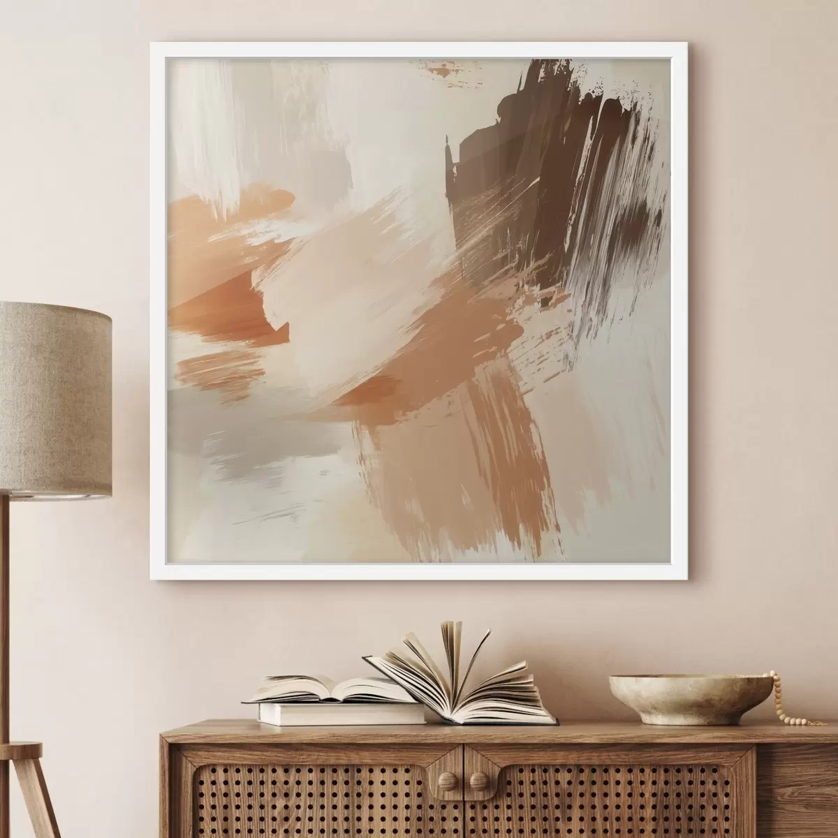 Poster Imitation de coups de pinceau abstraits dans des tons sable et bruns f48857