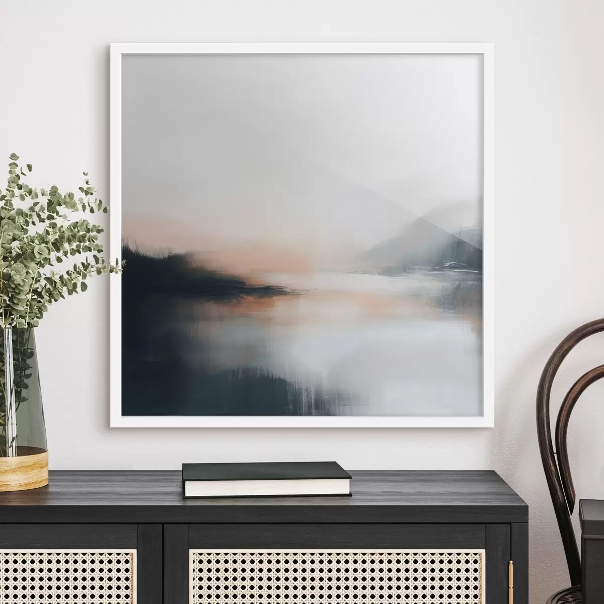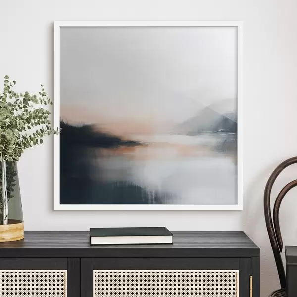 Poster Paysage abstrait et brumeux dans une palette de tons chauds beige-corail Nr f48861