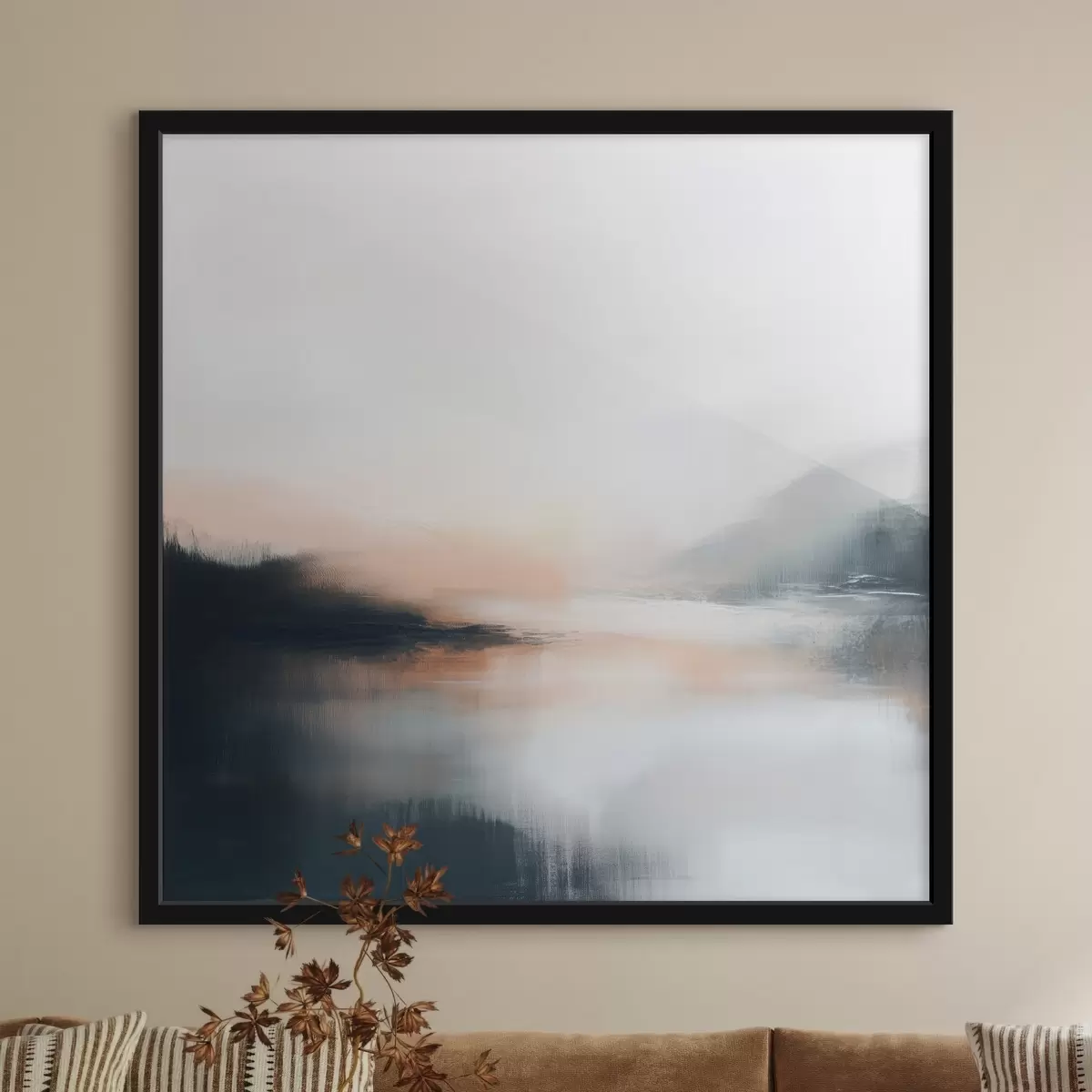 Poster Paysage abstrait et brumeux dans une palette de tons chauds beige-corail f48861