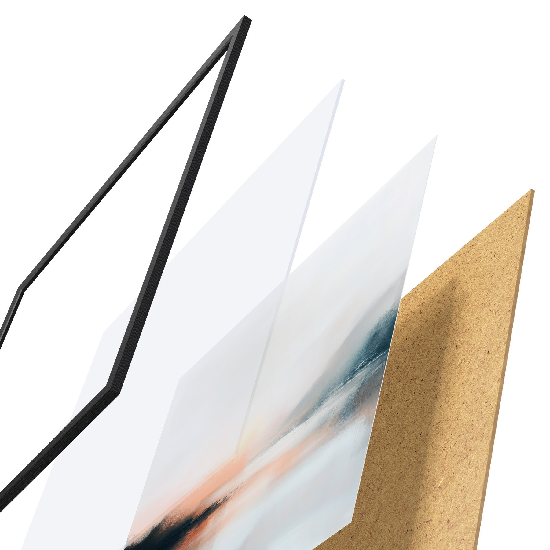 L’affiche encadrée est composée d’un cadre, d’un plexiglas, d’une image imprimée et d’un support en aggloméré. Elle est prête à être accrochée au mur grâce aux fixations situées à l’arrière.