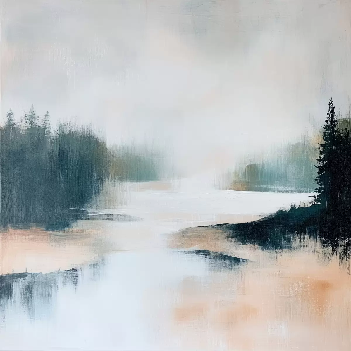 Poster Paysage forestier abstrait dans des tons roses et bleus, dans un style pictural contemporain Nr f48862