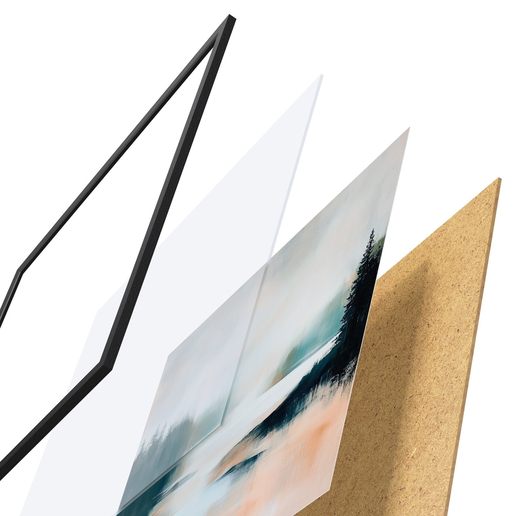 L’affiche encadrée est composée d’un cadre, d’un plexiglas, d’une image imprimée et d’un support en aggloméré. Elle est prête à être accrochée au mur grâce aux fixations situées à l’arrière.