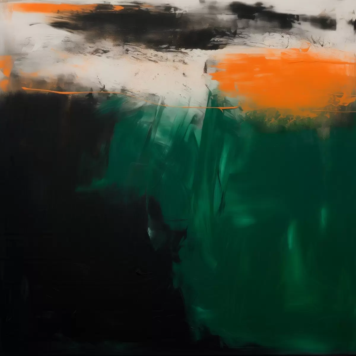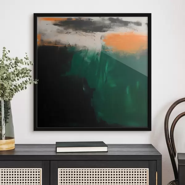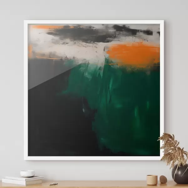 Poster Une œuvre abstraite rehaussée d'une touche d'orange et de touches de vert profond, dans un style pictural contemporain Nr f48865