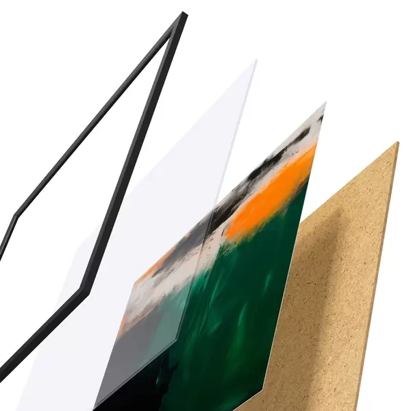L’affiche encadrée est composée d’un cadre, d’un plexiglas, d’une image imprimée et d’un support en aggloméré. Elle est prête à être accrochée au mur grâce aux fixations situées à l’arrière.