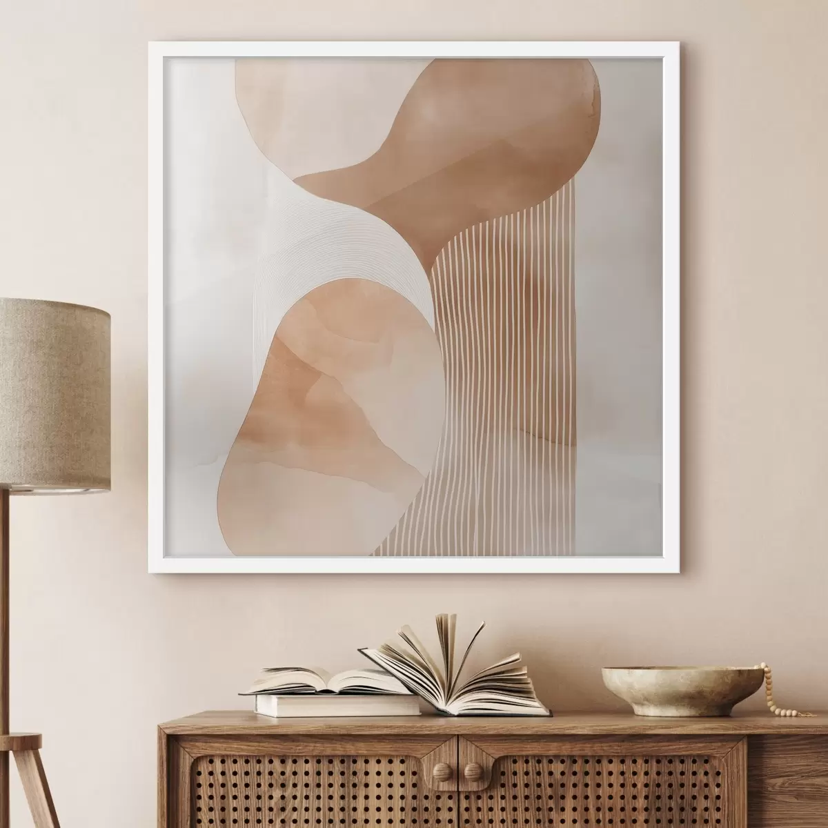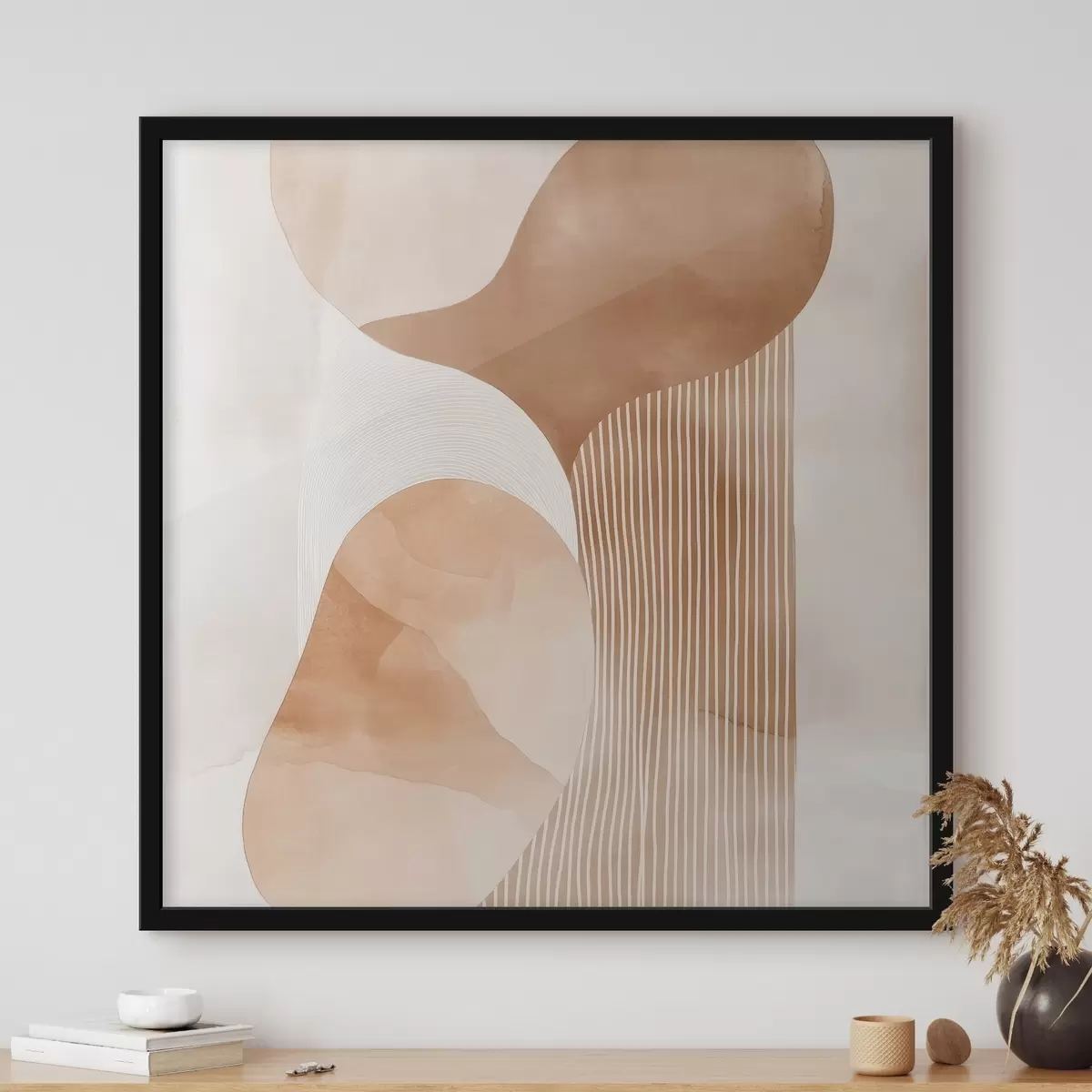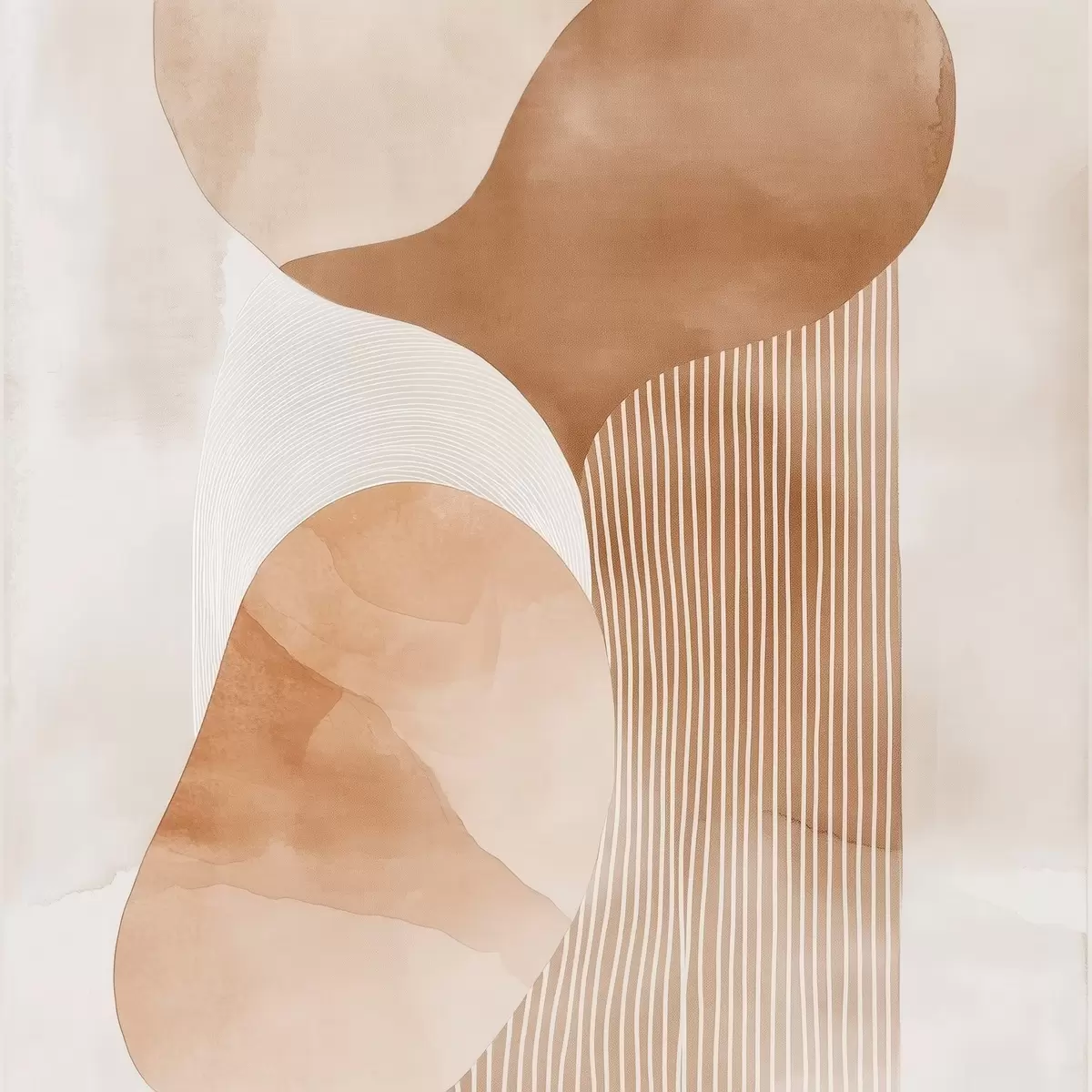 Poster Objets décoratifs dans une palette de tons beiges et corail chaleureux, avec un effet aquarelle f48870