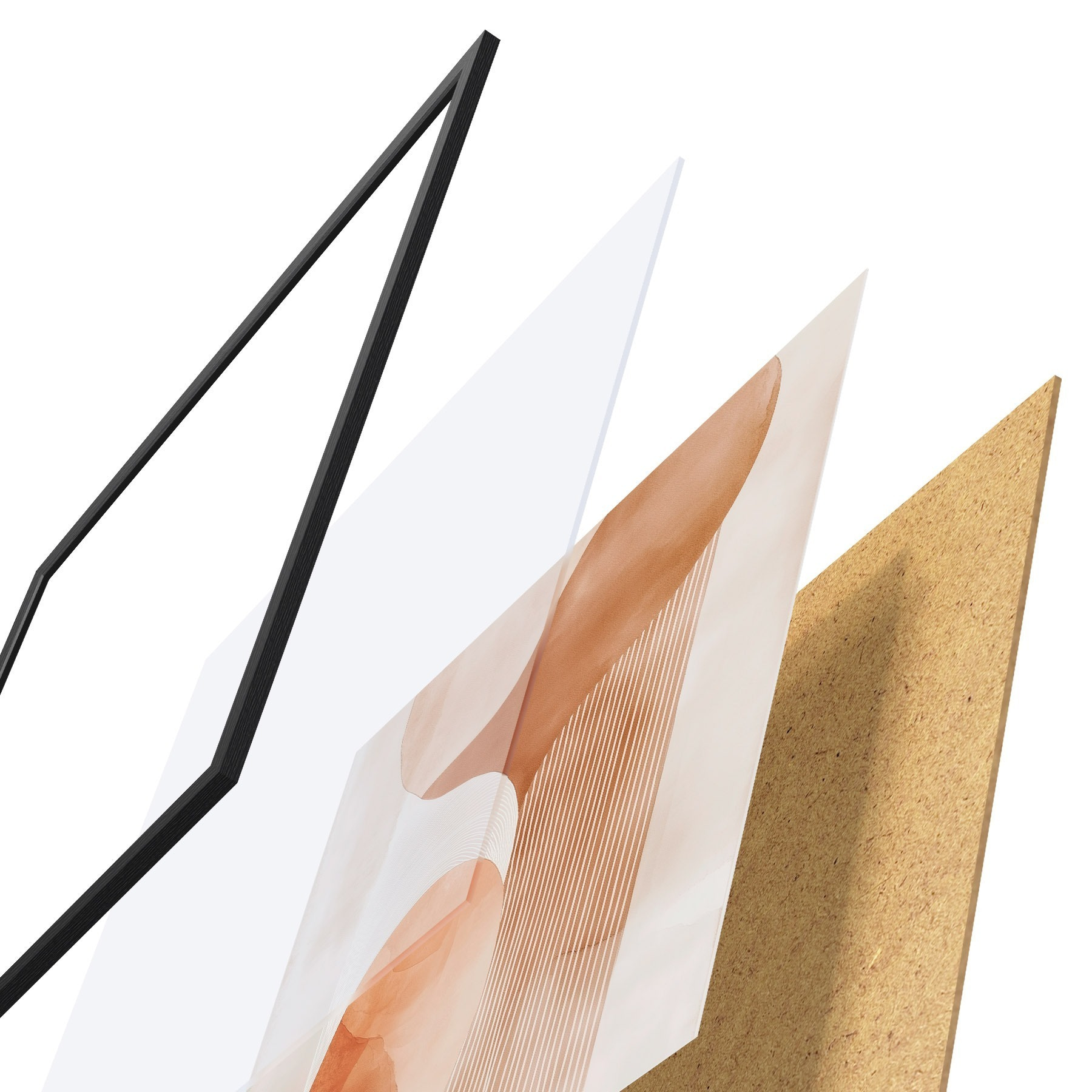 L’affiche encadrée est composée d’un cadre, d’un plexiglas, d’une image imprimée et d’un support en aggloméré. Elle est prête à être accrochée au mur grâce aux fixations situées à l’arrière.