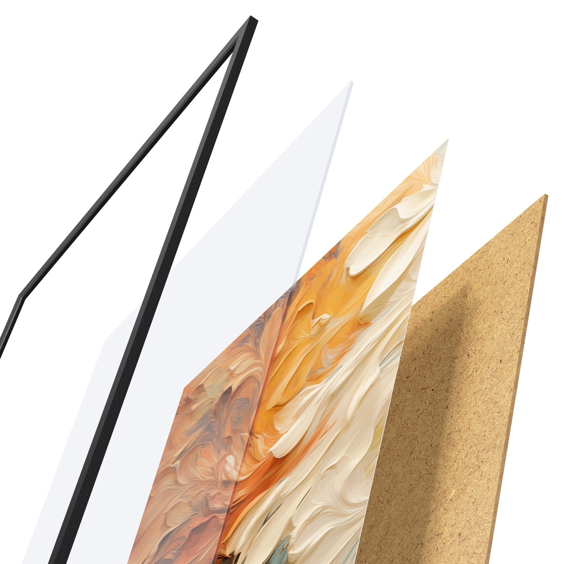 L’affiche encadrée est composée d’un cadre, d’un plexiglas, d’une image imprimée et d’un support en aggloméré. Elle est prête à être accrochée au mur grâce aux fixations situées à l’arrière.