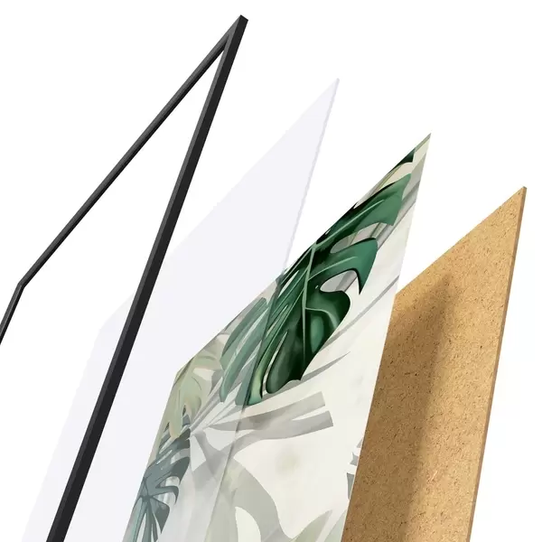 L’affiche encadrée est composée d’un cadre, d’un plexiglas, d’une image imprimée et d’un support en aggloméré. Elle est prête à être accrochée au mur grâce aux fixations situées à l’arrière.