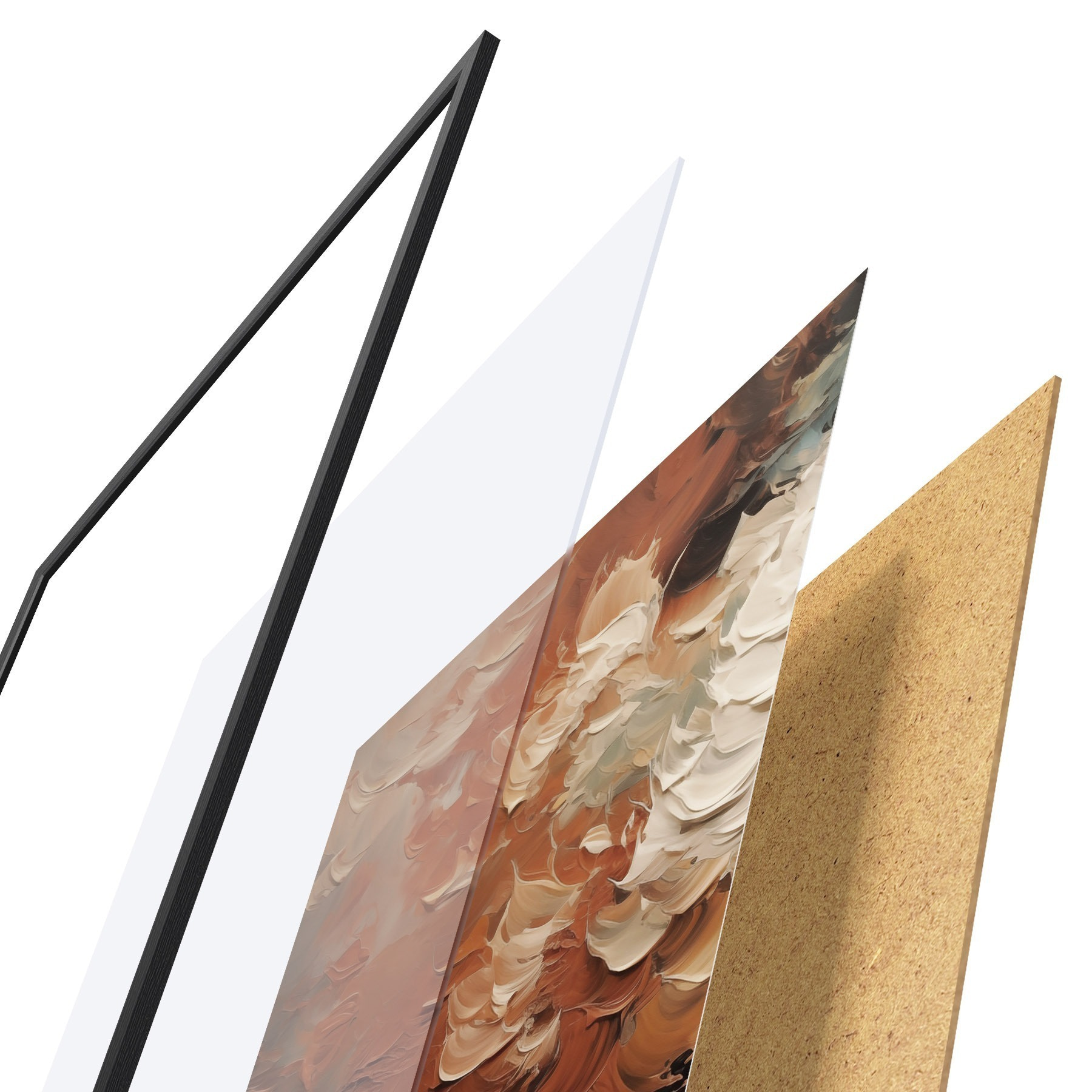 L’affiche encadrée est composée d’un cadre, d’un plexiglas, d’une image imprimée et d’un support en aggloméré. Elle est prête à être accrochée au mur grâce aux fixations situées à l’arrière.