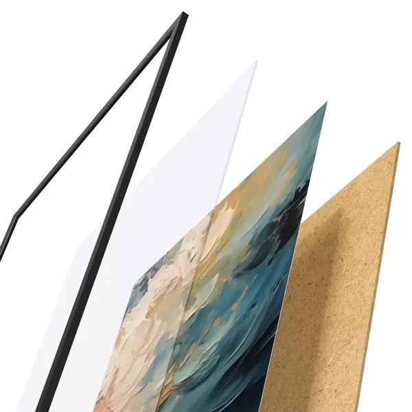 L’affiche encadrée est composée d’un cadre, d’un plexiglas, d’une image imprimée et d’un support en aggloméré. Elle est prête à être accrochée au mur grâce aux fixations situées à l’arrière.