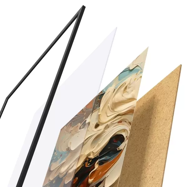 L’affiche encadrée est composée d’un cadre, d’un plexiglas, d’une image imprimée et d’un support en aggloméré. Elle est prête à être accrochée au mur grâce aux fixations situées à l’arrière.
