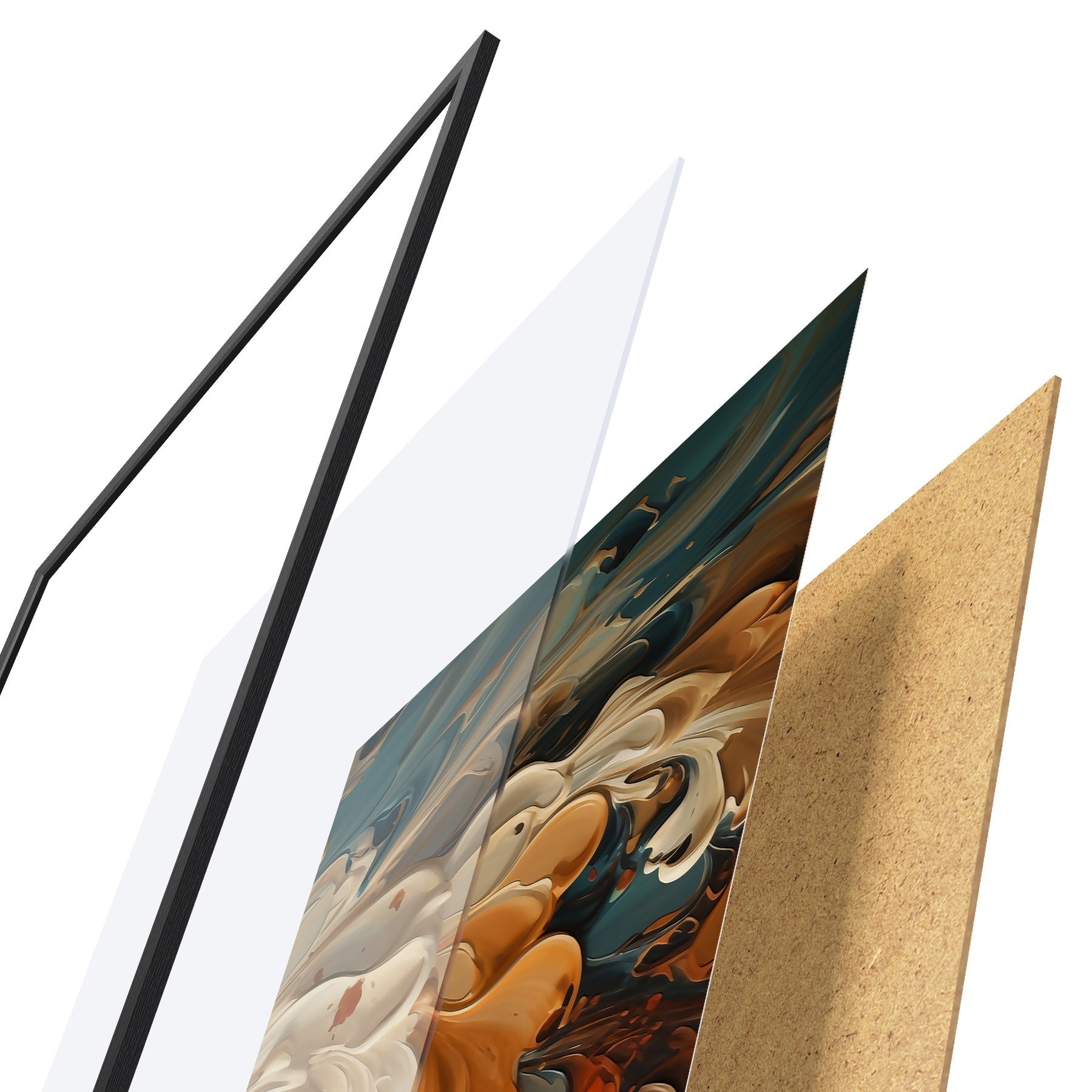 L’affiche encadrée est composée d’un cadre, d’un plexiglas, d’une image imprimée et d’un support en aggloméré. Elle est prête à être accrochée au mur grâce aux fixations situées à l’arrière.