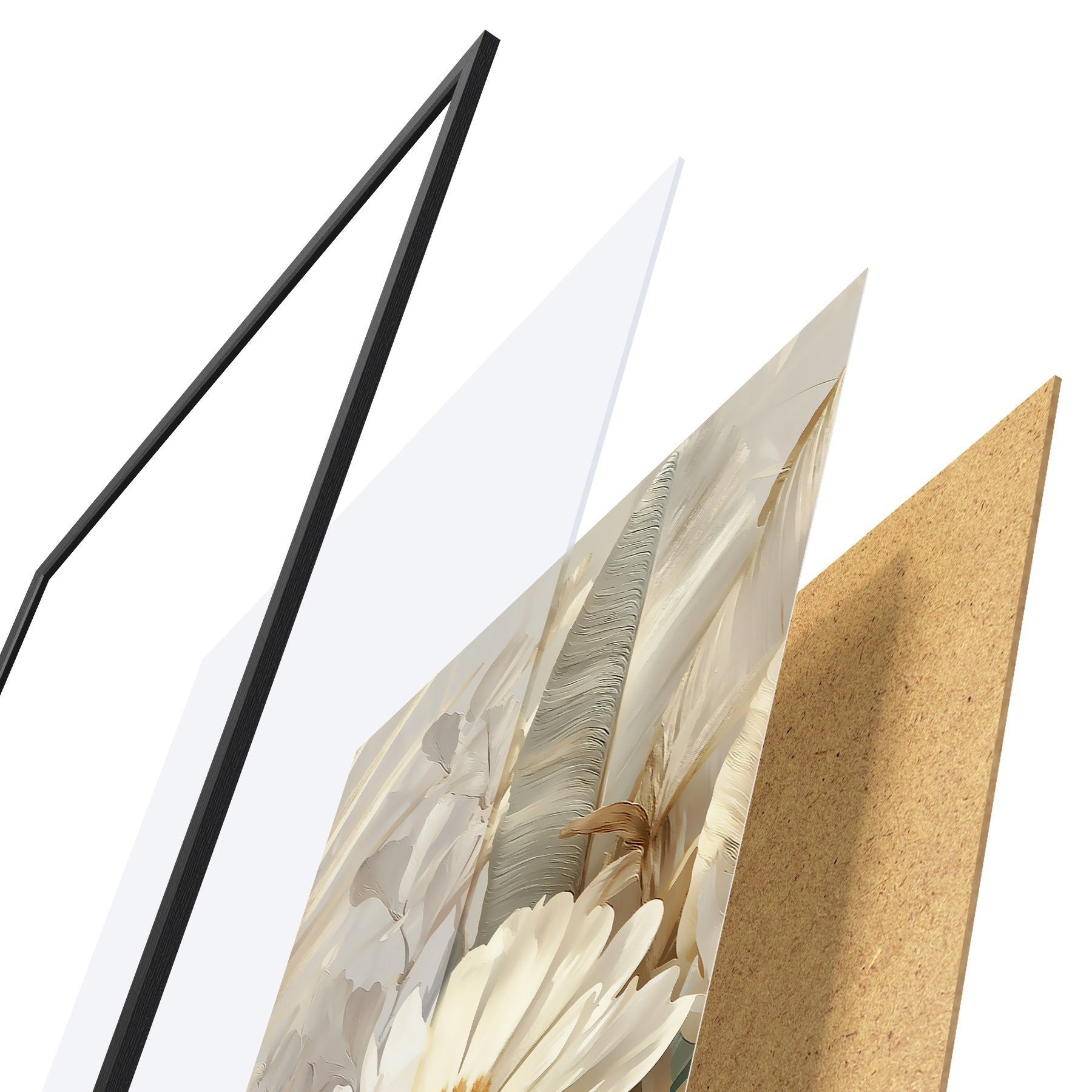 L’affiche encadrée est composée d’un cadre, d’un plexiglas, d’une image imprimée et d’un support en aggloméré. Elle est prête à être accrochée au mur grâce aux fixations situées à l’arrière.