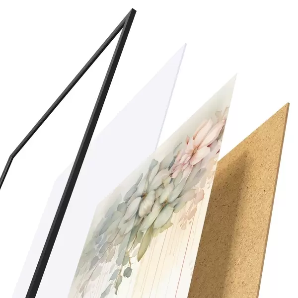 L’affiche encadrée est composée d’un cadre, d’un plexiglas, d’une image imprimée et d’un support en aggloméré. Elle est prête à être accrochée au mur grâce aux fixations situées à l’arrière.