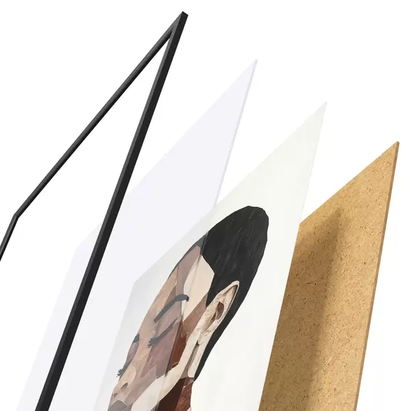 L’affiche encadrée est composée d’un cadre, d’un plexiglas, d’une image imprimée et d’un support en aggloméré. Elle est prête à être accrochée au mur grâce aux fixations situées à l’arrière.