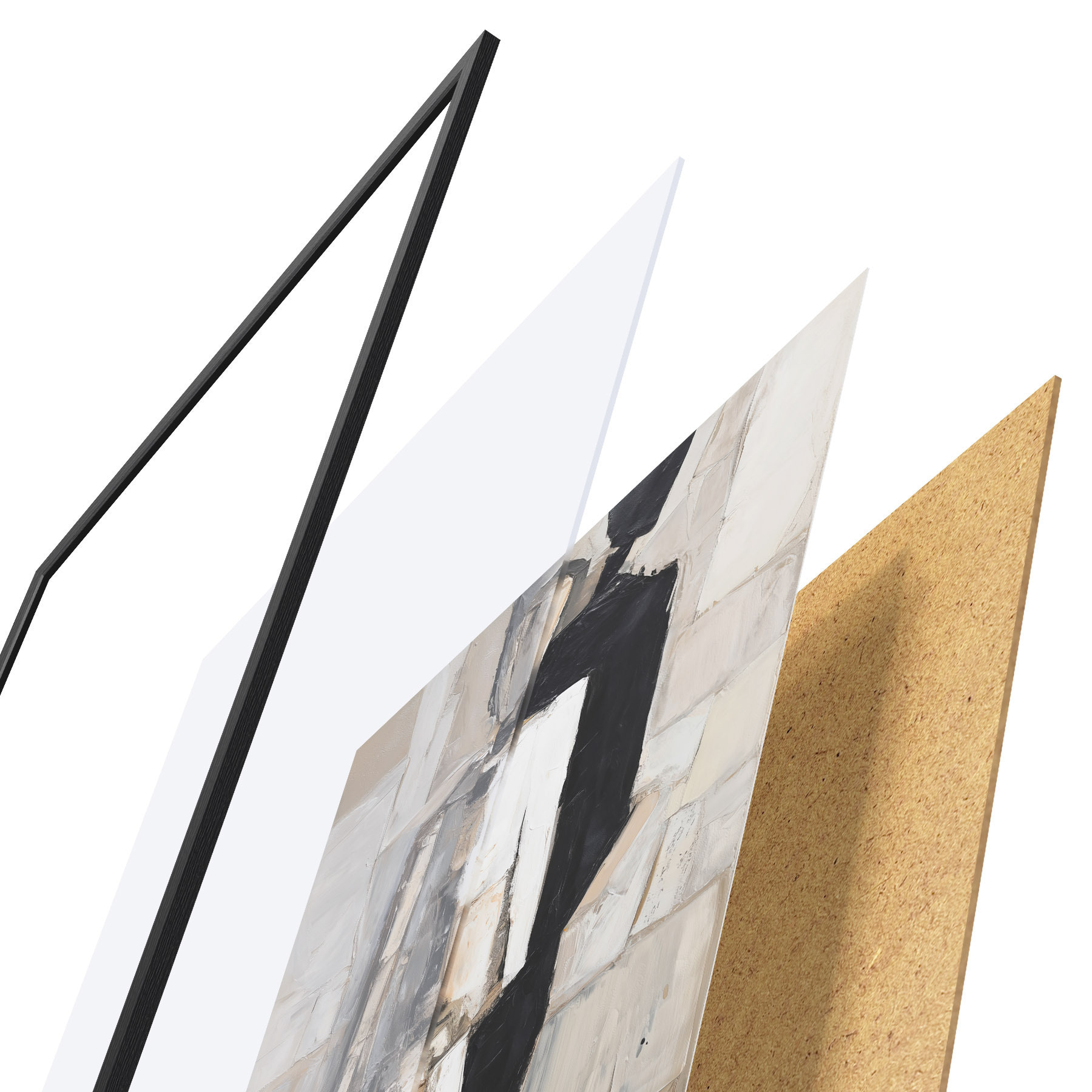 L’affiche encadrée est composée d’un cadre, d’un plexiglas, d’une image imprimée et d’un support en aggloméré. Elle est prête à être accrochée au mur grâce aux fixations situées à l’arrière.