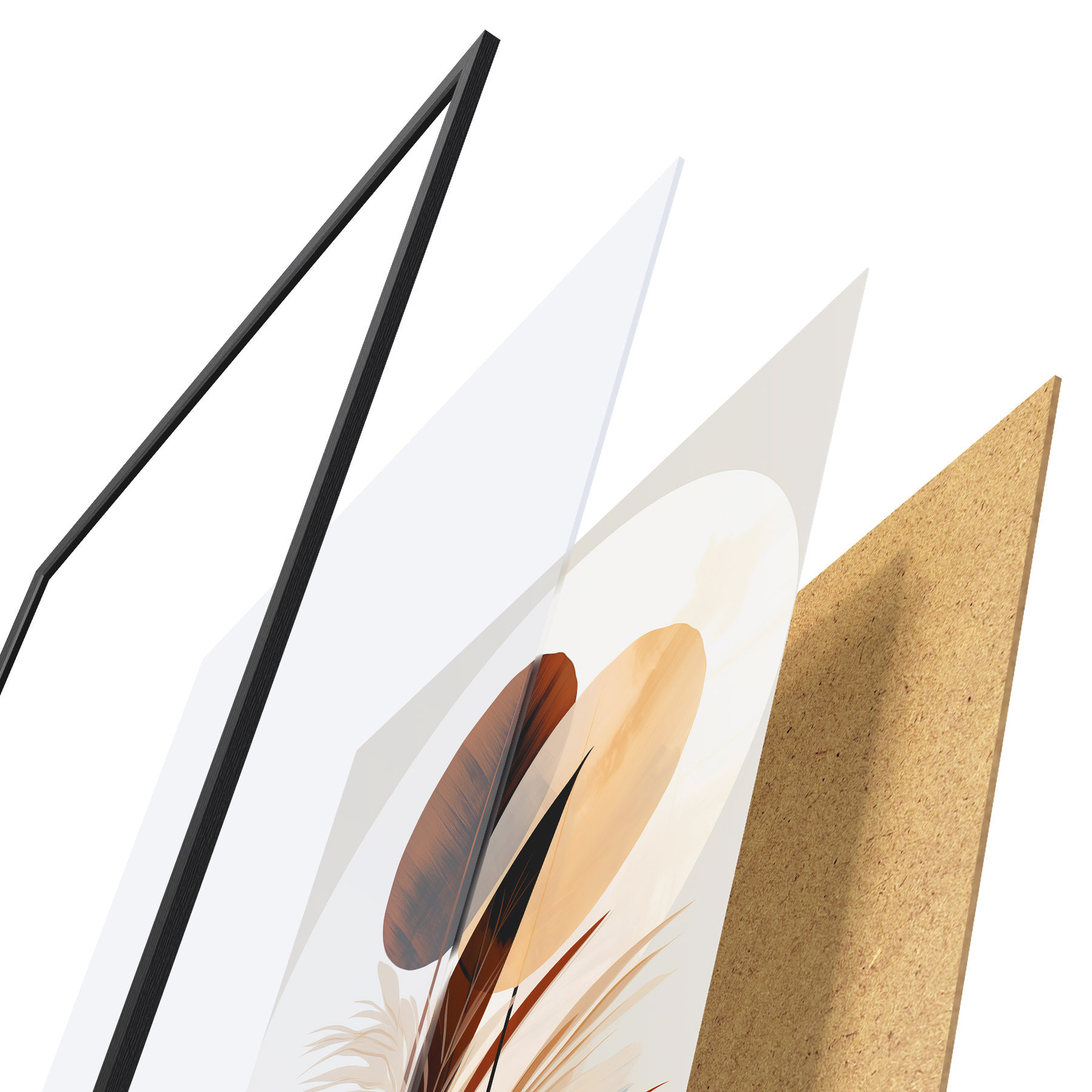 L’affiche encadrée est composée d’un cadre, d’un plexiglas, d’une image imprimée et d’un support en aggloméré. Elle est prête à être accrochée au mur grâce aux fixations situées à l’arrière.