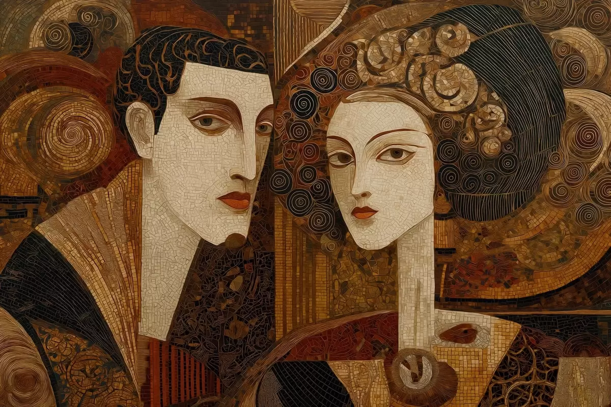 Poster Couple dans un style mosaïque, portrait abstrait Nr f48933