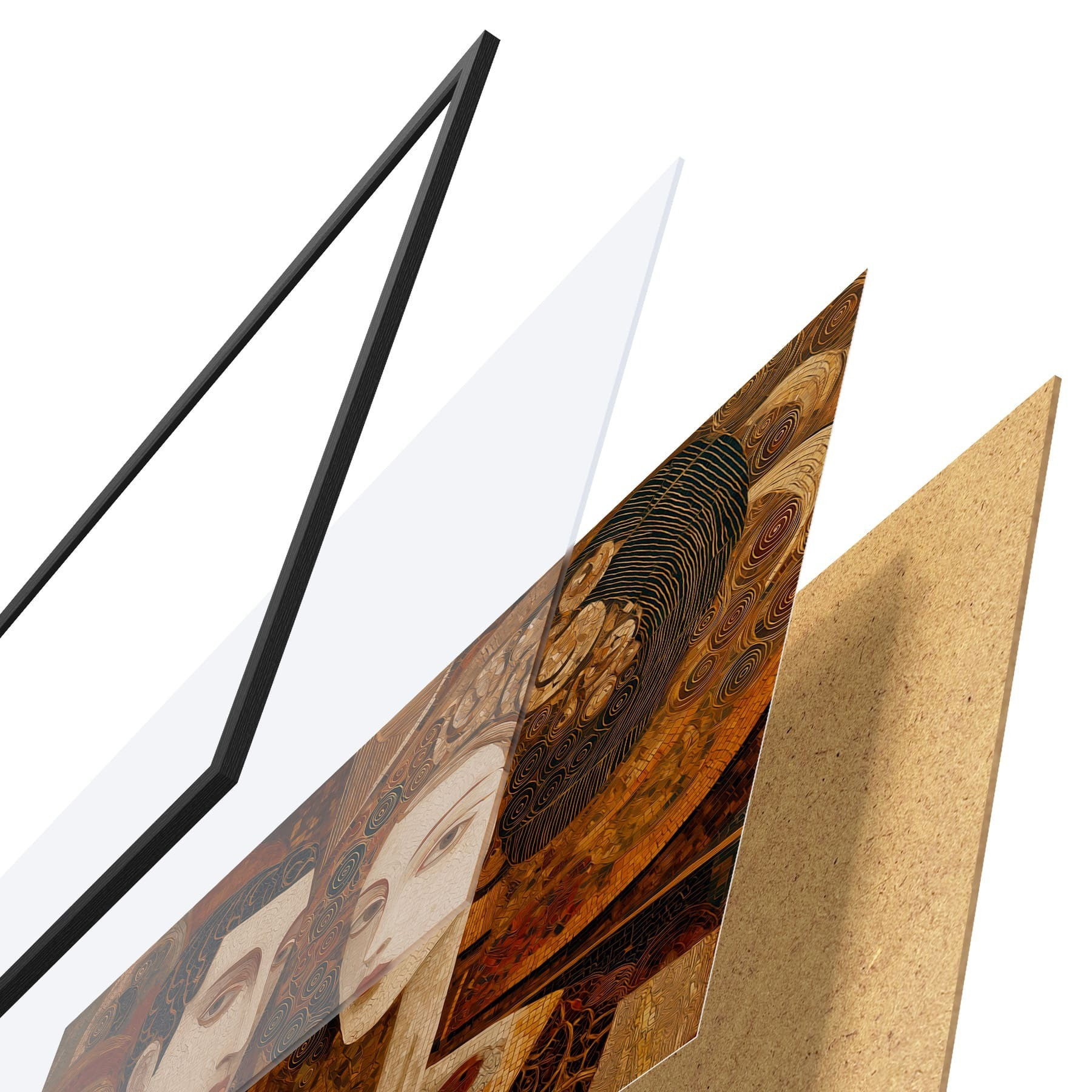 L’affiche encadrée est composée d’un cadre, d’un plexiglas, d’une image imprimée et d’un support en aggloméré. Elle est prête à être accrochée au mur grâce aux fixations situées à l’arrière.