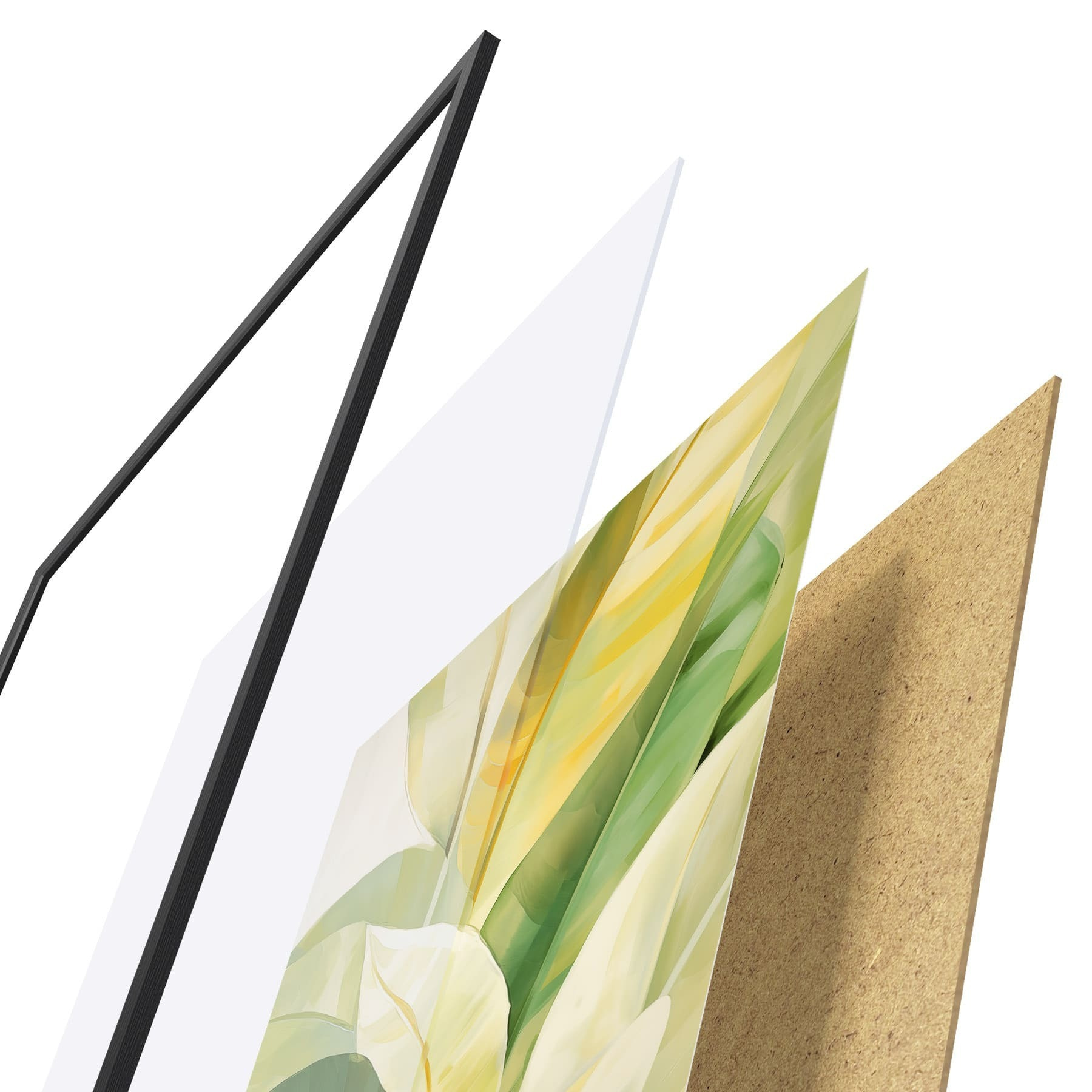 L’affiche encadrée est composée d’un cadre, d’un plexiglas, d’une image imprimée et d’un support en aggloméré. Elle est prête à être accrochée au mur grâce aux fixations situées à l’arrière.