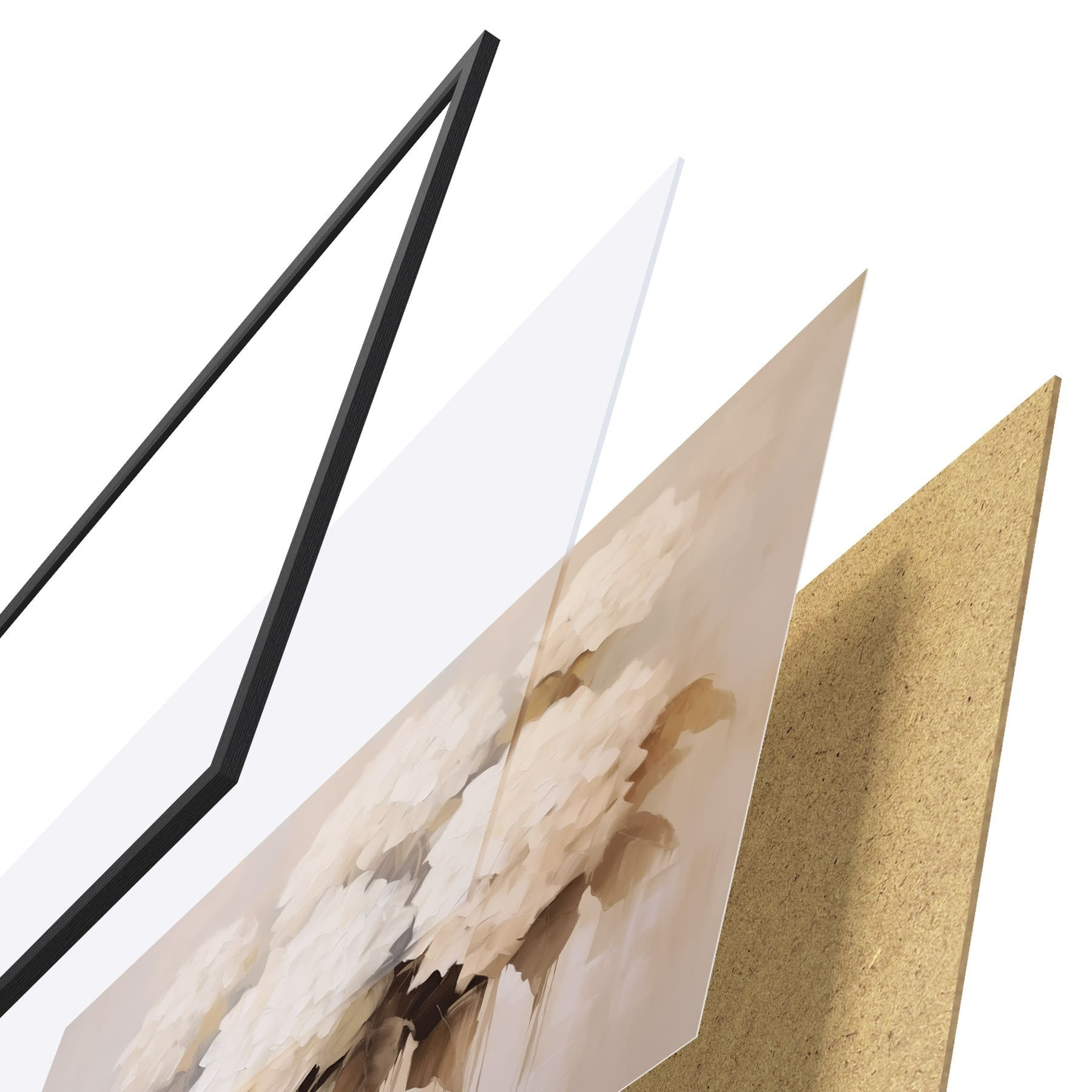 L’affiche encadrée est composée d’un cadre, d’un plexiglas, d’une image imprimée et d’un support en aggloméré. Elle est prête à être accrochée au mur grâce aux fixations situées à l’arrière.