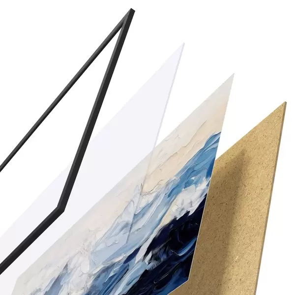 L’affiche encadrée est composée d’un cadre, d’un plexiglas, d’une image imprimée et d’un support en aggloméré. Elle est prête à être accrochée au mur grâce aux fixations situées à l’arrière.