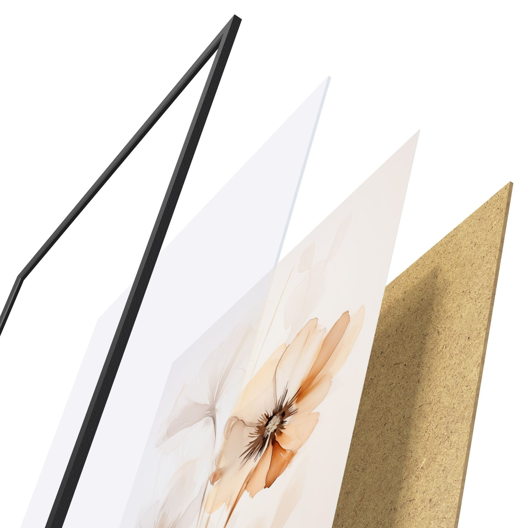 L’affiche encadrée est composée d’un cadre, d’un plexiglas, d’une image imprimée et d’un support en aggloméré. Elle est prête à être accrochée au mur grâce aux fixations situées à l’arrière.