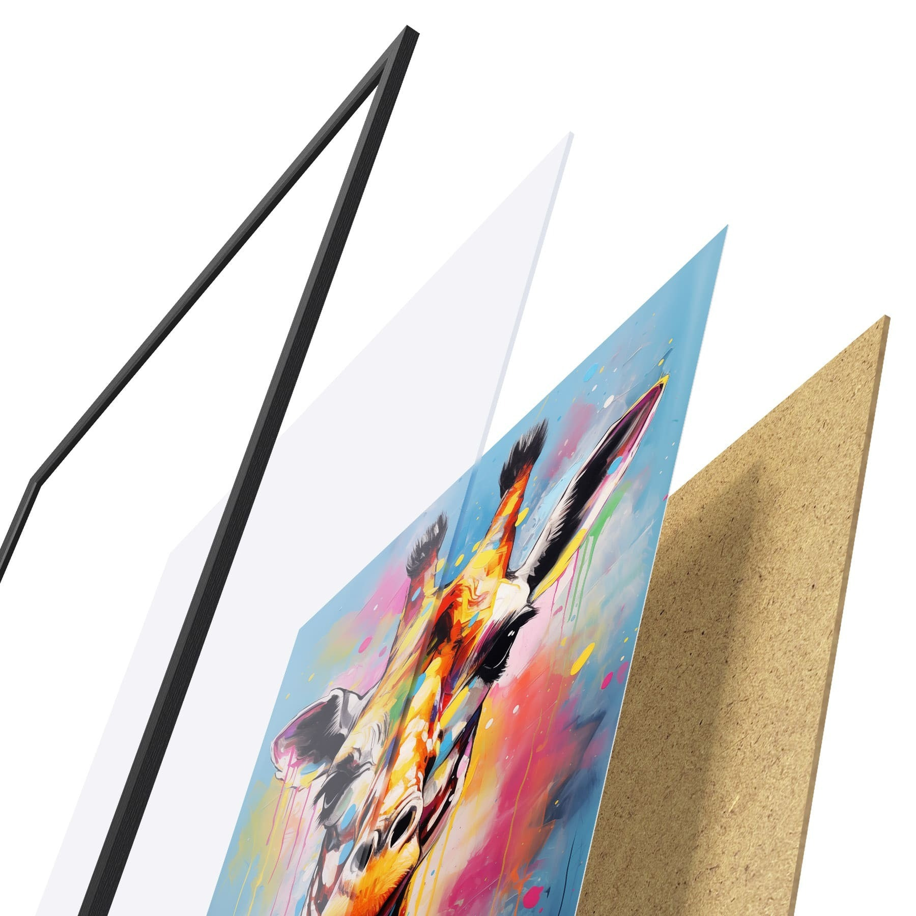 L’affiche encadrée est composée d’un cadre, d’un plexiglas, d’une image imprimée et d’un support en aggloméré. Elle est prête à être accrochée au mur grâce aux fixations situées à l’arrière.