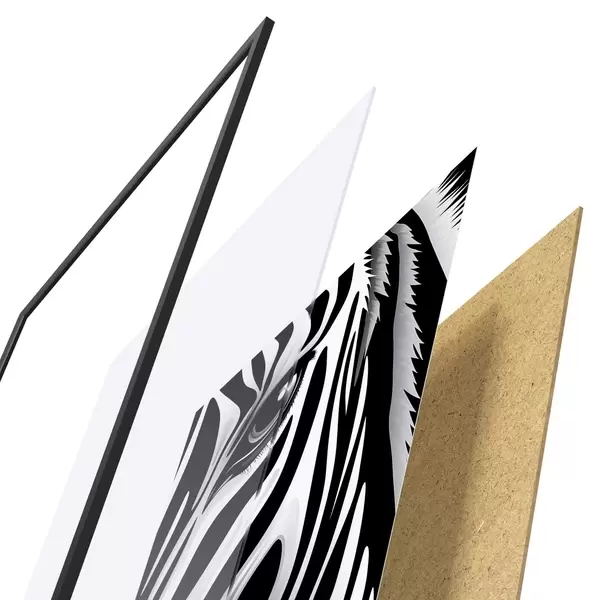 L’affiche encadrée est composée d’un cadre, d’un plexiglas, d’une image imprimée et d’un support en aggloméré. Elle est prête à être accrochée au mur grâce aux fixations situées à l’arrière.
