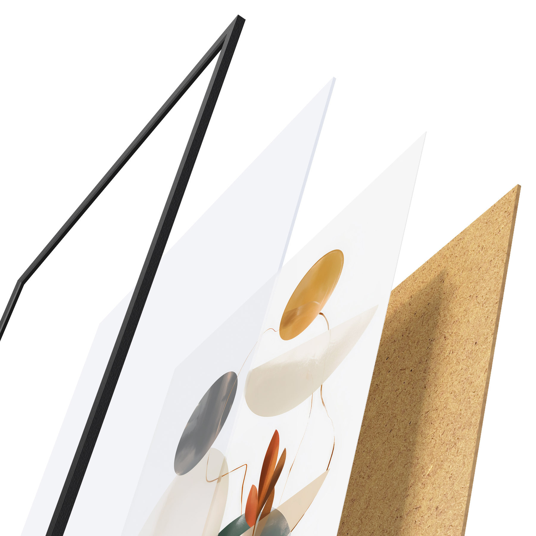 L’affiche encadrée est composée d’un cadre, d’un plexiglas, d’une image imprimée et d’un support en aggloméré. Elle est prête à être accrochée au mur grâce aux fixations situées à l’arrière.