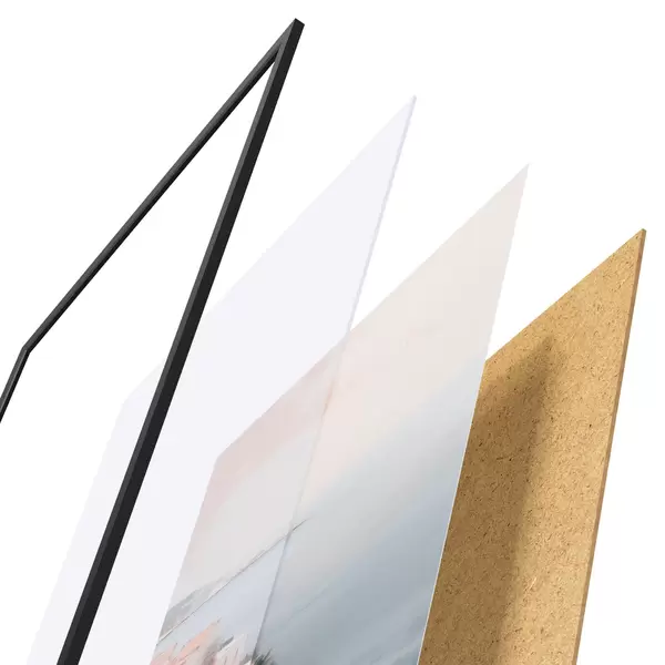 L’affiche encadrée est composée d’un cadre, d’un plexiglas, d’une image imprimée et d’un support en aggloméré. Elle est prête à être accrochée au mur grâce aux fixations situées à l’arrière.