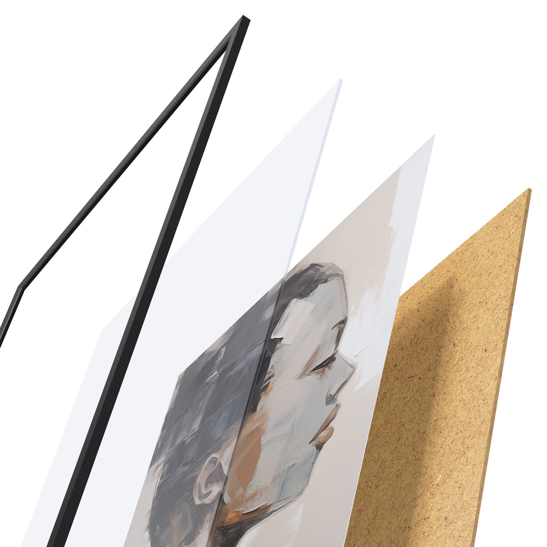 L’affiche encadrée est composée d’un cadre, d’un plexiglas, d’une image imprimée et d’un support en aggloméré. Elle est prête à être accrochée au mur grâce aux fixations situées à l’arrière.