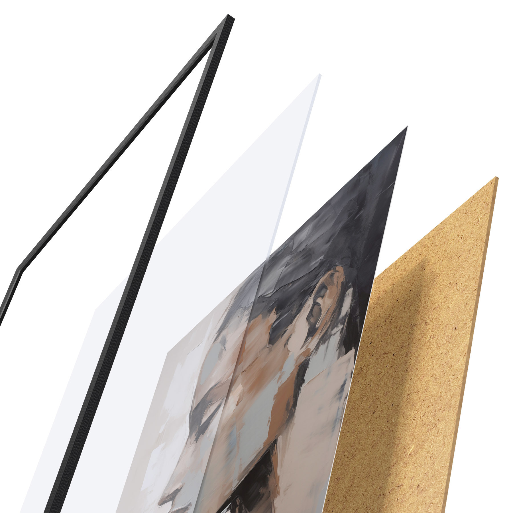 L’affiche encadrée est composée d’un cadre, d’un plexiglas, d’une image imprimée et d’un support en aggloméré. Elle est prête à être accrochée au mur grâce aux fixations situées à l’arrière.