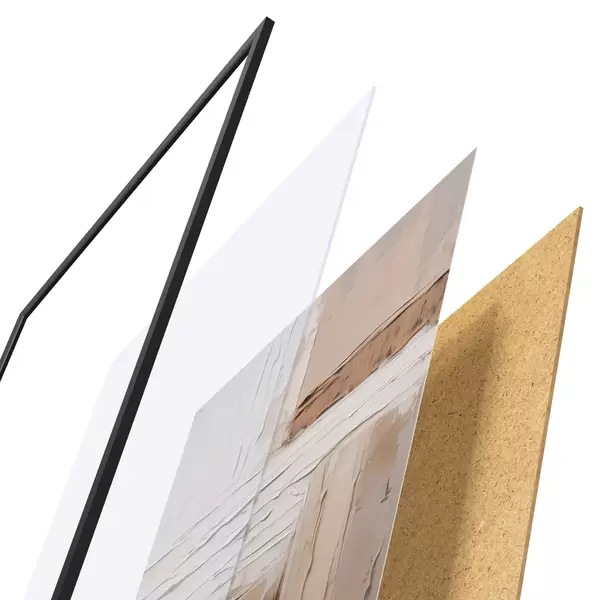 L’affiche encadrée est composée d’un cadre, d’un plexiglas, d’une image imprimée et d’un support en aggloméré. Elle est prête à être accrochée au mur grâce aux fixations situées à l’arrière.