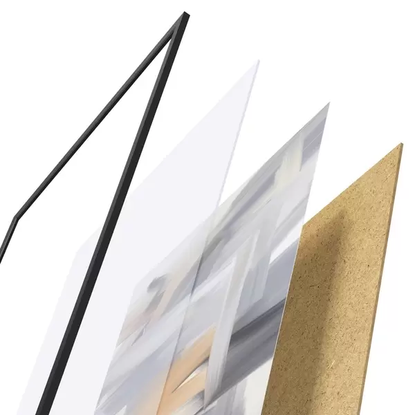 L’affiche encadrée est composée d’un cadre, d’un plexiglas, d’une image imprimée et d’un support en aggloméré. Elle est prête à être accrochée au mur grâce aux fixations situées à l’arrière.