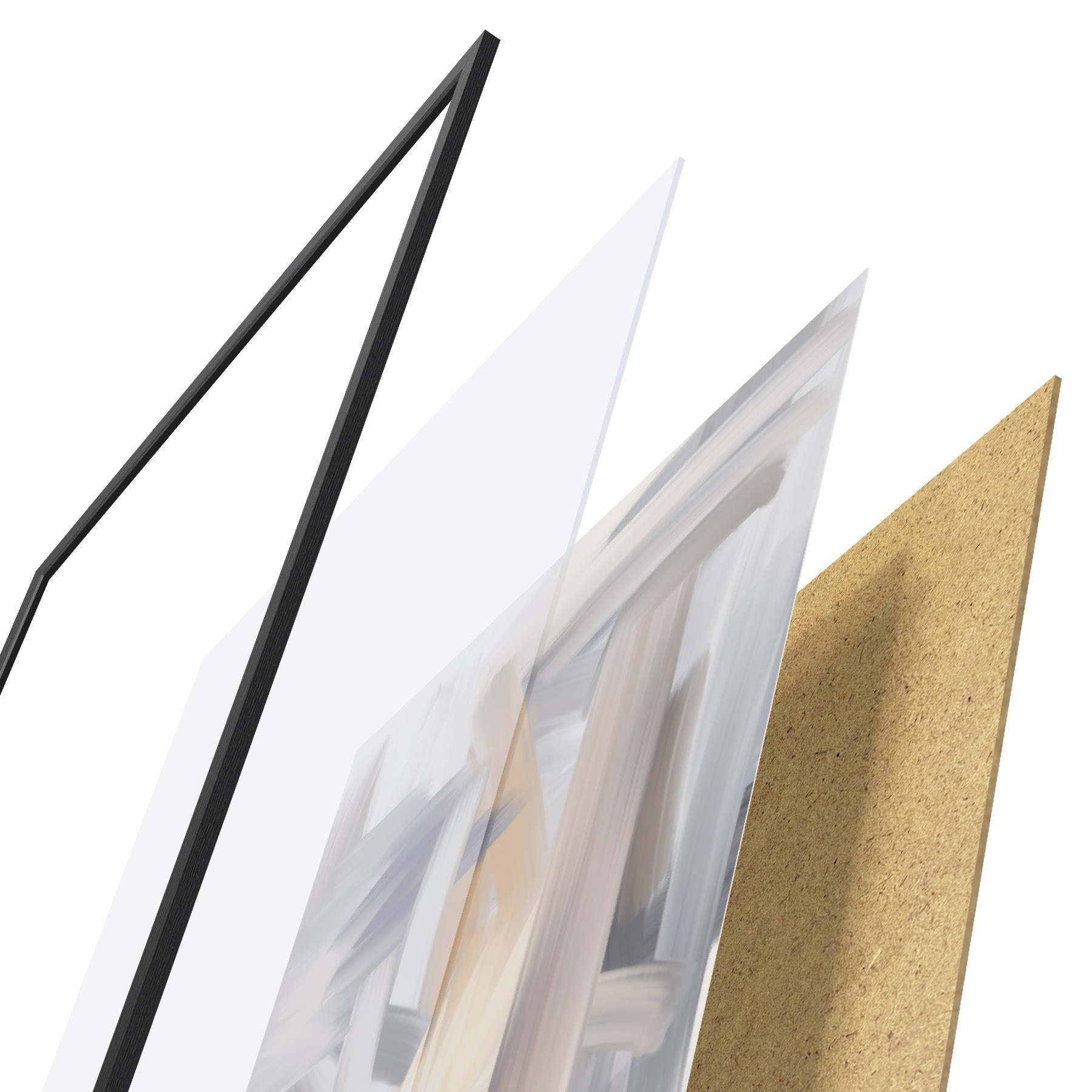 L’affiche encadrée est composée d’un cadre, d’un plexiglas, d’une image imprimée et d’un support en aggloméré. Elle est prête à être accrochée au mur grâce aux fixations situées à l’arrière.