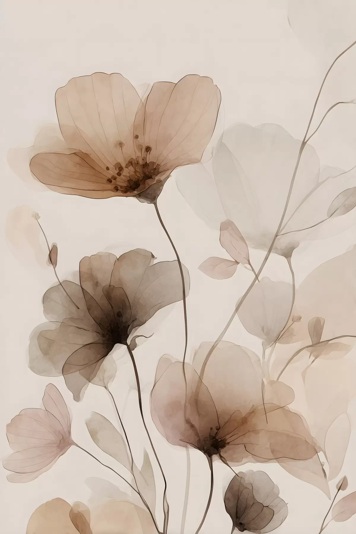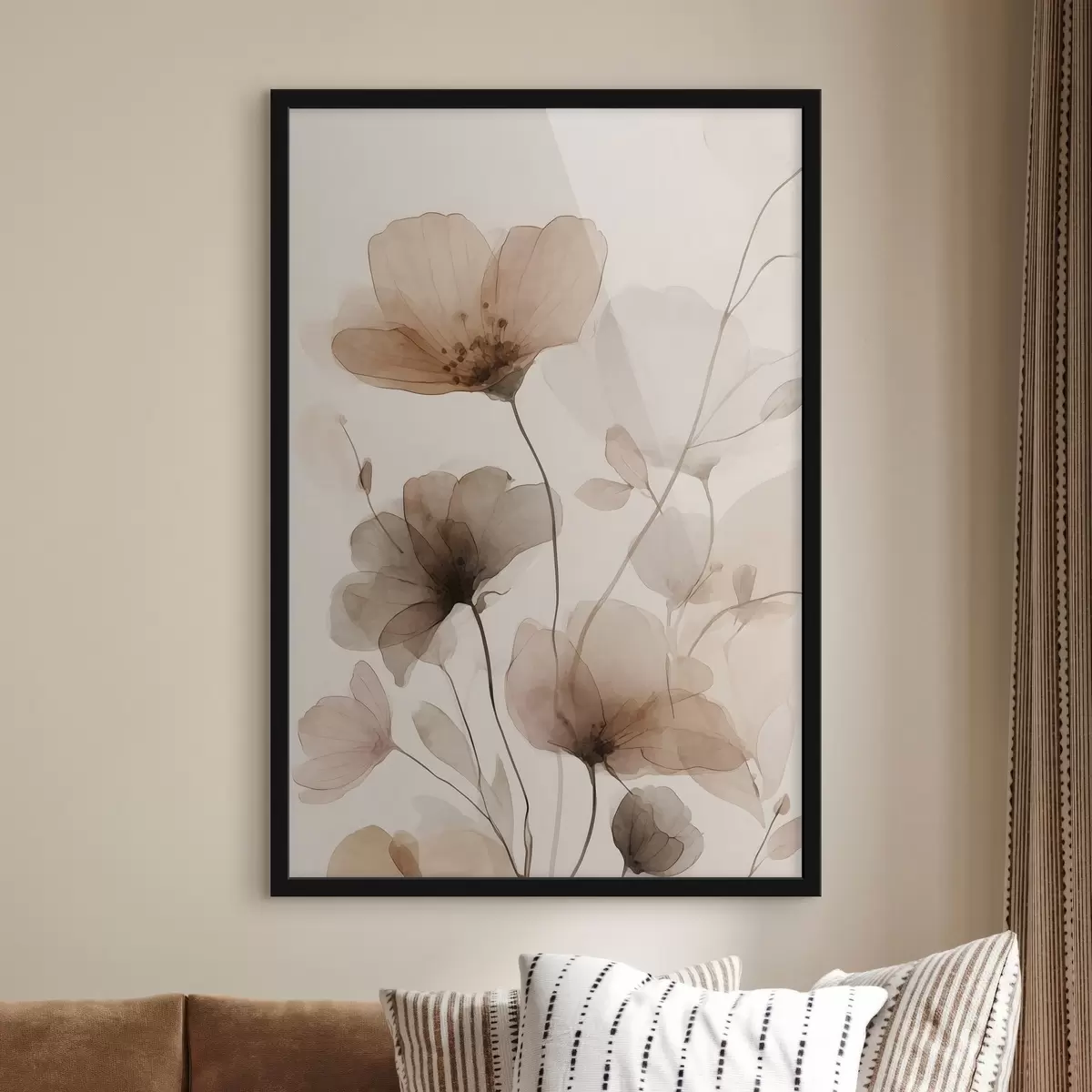 Poster fleurs à l'aquarelle dans des tons de brun Nr f49006