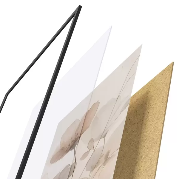 L’affiche encadrée est composée d’un cadre, d’un plexiglas, d’une image imprimée et d’un support en aggloméré. Elle est prête à être accrochée au mur grâce aux fixations situées à l’arrière.
