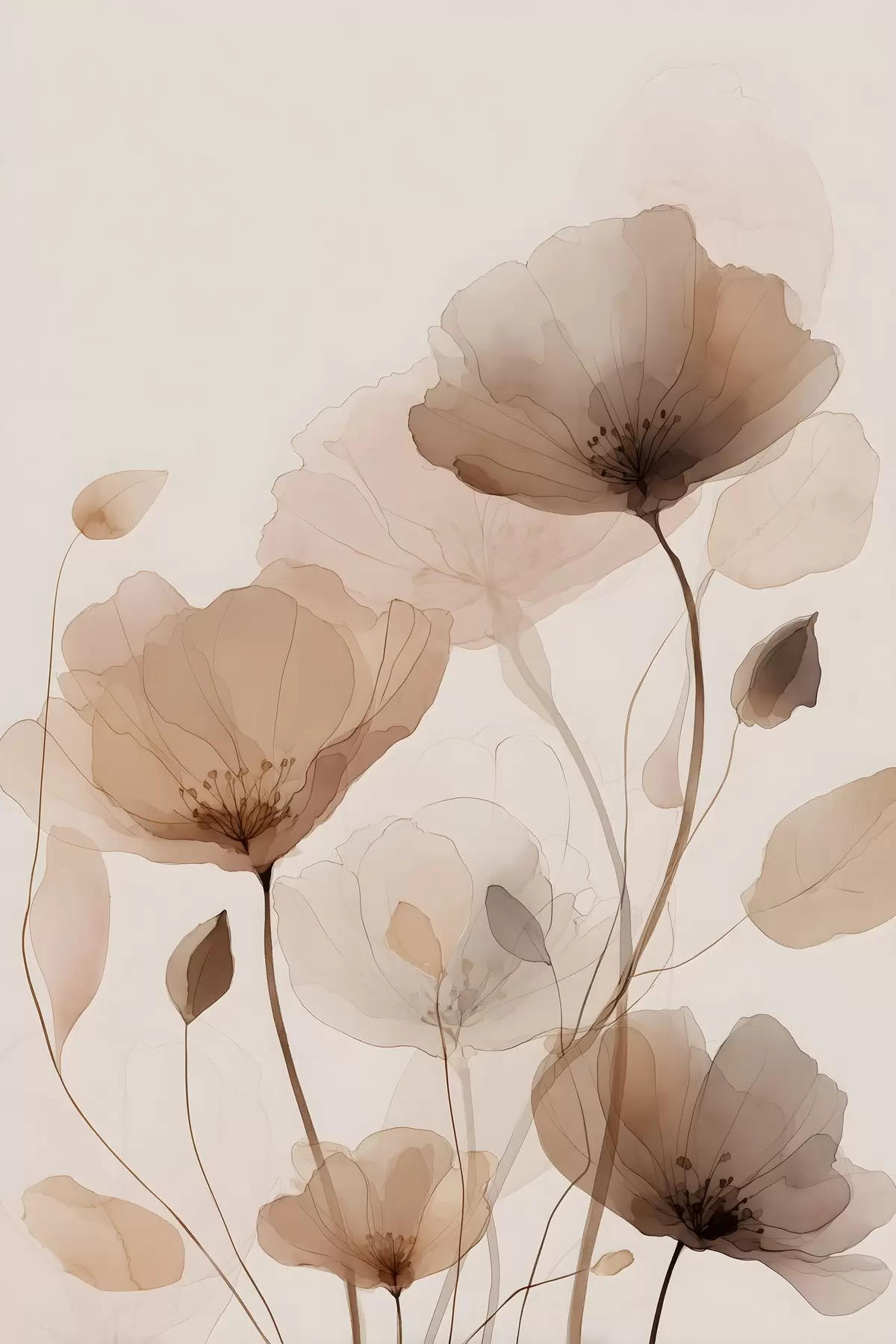 Poster fleurs à l'aquarelle dans des tons de brun Nr f49007