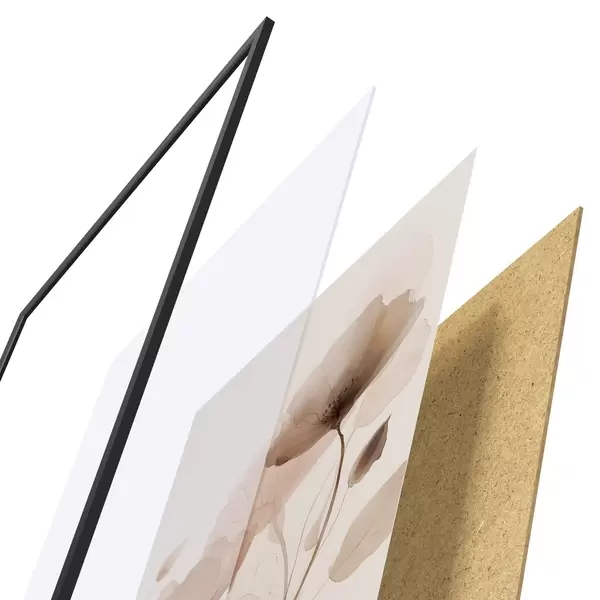 L’affiche encadrée est composée d’un cadre, d’un plexiglas, d’une image imprimée et d’un support en aggloméré. Elle est prête à être accrochée au mur grâce aux fixations situées à l’arrière.