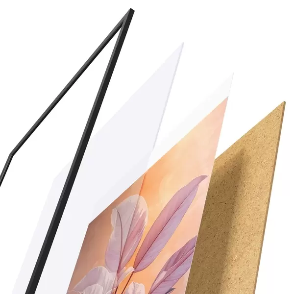 L’affiche encadrée est composée d’un cadre, d’un plexiglas, d’une image imprimée et d’un support en aggloméré. Elle est prête à être accrochée au mur grâce aux fixations situées à l’arrière.