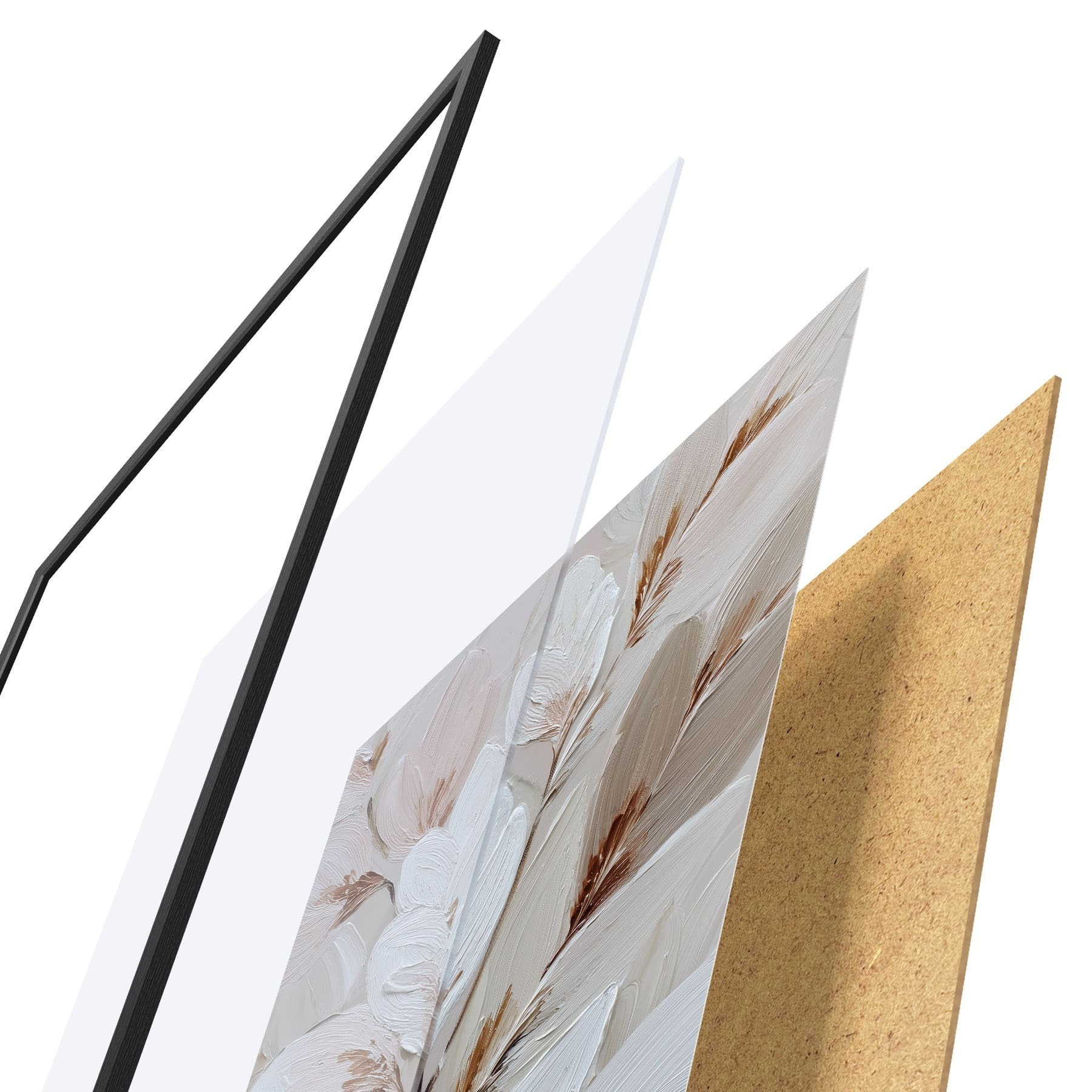 L’affiche encadrée est composée d’un cadre, d’un plexiglas, d’une image imprimée et d’un support en aggloméré. Elle est prête à être accrochée au mur grâce aux fixations situées à l’arrière.