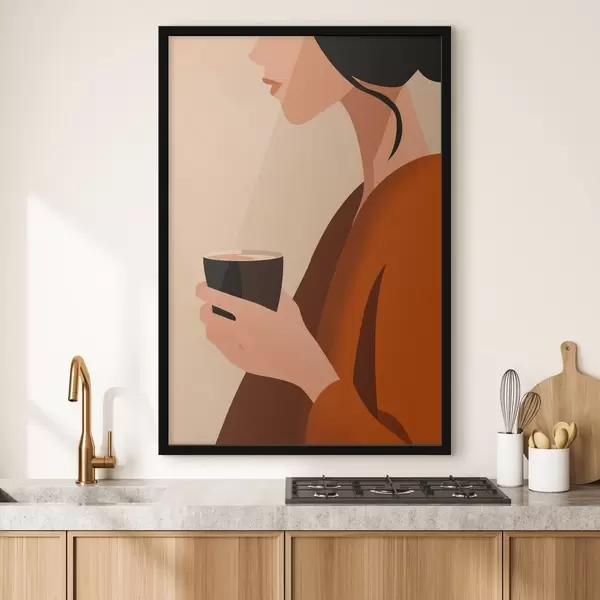 Poster Femme avec une tasse (style minimaliste) f49019