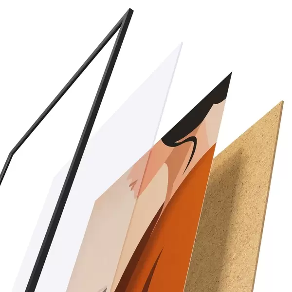 L’affiche encadrée est composée d’un cadre, d’un plexiglas, d’une image imprimée et d’un support en aggloméré. Elle est prête à être accrochée au mur grâce aux fixations situées à l’arrière.