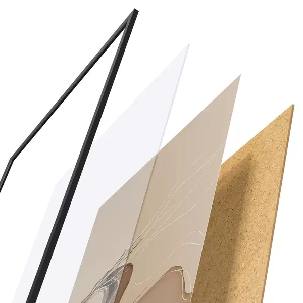 L’affiche encadrée est composée d’un cadre, d’un plexiglas, d’une image imprimée et d’un support en aggloméré. Elle est prête à être accrochée au mur grâce aux fixations situées à l’arrière.