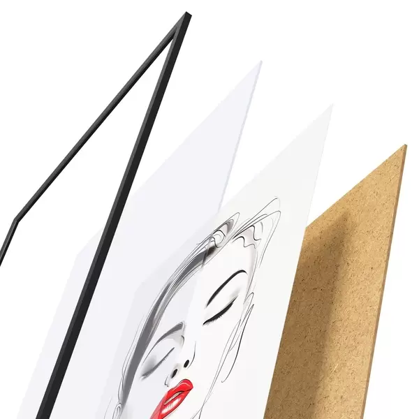 L’affiche encadrée est composée d’un cadre, d’un plexiglas, d’une image imprimée et d’un support en aggloméré. Elle est prête à être accrochée au mur grâce aux fixations situées à l’arrière.